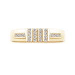 Each bar showcases finely set diamonds arranged in clean, vertical lines—creating a rhythmic pattern of sparkle and symmetry. The channel setting ensures every diamond sits securely and smoothly within the band, making it ideal for daily wear while maintaining a polished, contemporary style.