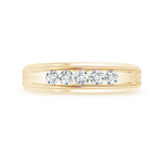 Perfect for the man who appreciates understated brilliance, this wedding band delivers elegance without excess. The five-stone arrangement provides radiant sparkle, while the clean channel design keeps the look sophisticated and timeless.