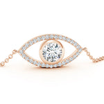 Crafted by Diwera Jewels, this striking bracelet blends protection and elegance through its modern evil eye design. The central motif features a bezel-set diamond surrounded by shimmering accent stones, creating a radiant symbol believed to bring luck and safeguard the wearer. Delicate yet captivating, this bracelet adds a meaningful touch of luxury to any jewelry collection.
