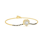 Crafted by Diwera Jewels, this elegant mangalsutra bracelet features a radiant heart-shaped solitaire surrounded by a shimmering diamond halo. Blending tradition with modern sophistication, the delicate black-bead chain enhances the brilliance of the centerpiece, creating a meaningful symbol of love and commitment. Graceful, timeless, and beautifully crafted, it’s a perfect everyday expression of elegance and devotion.