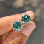 In Fact, each pair of Cyan Blue Moissanite Earrings is make using high-quality craftsmanship. The antique cut Moissanite stud earrings reflect skilled artistry and a unique style. The cyan blue stones, with a precise Portuguese cut, are held in 5 prong earring settings to keep the focus on the diamond-like detail. These Moissanite earrings suit daily wear and gift occasions alike.