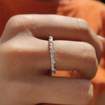 Looking for a beautiful and unique wedding band? The Twisted Eternity Band is the perfect choice. This ring features a distinctive twisted design, adding modern flair to your wedding look. Made with round moissanite wedding band stones, it offers a brilliant sparkle that stands out.