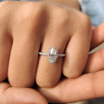 • Elegant marquise ring with a halo for vintage and modern style lovers.