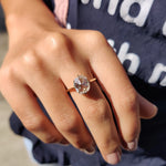 The straightforward lines of the Solitaire Engagement Ring make it a beloved choice for proposals. Either a concealed halo engagement ring or a cushion rose cut band, both choices highlight elegance. Any wedding band will look great worn with this basic engagement ring.