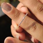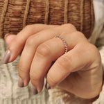 The minimalist wedding band is a simple but beautiful piece made for people who like beauty that doesn't stand out. Made of high-quality rose gold, this band features round diamonds set in a shared prong wedding band style. While, This simple design is great for adding a touch of elegance to your collection, whether you want to buy a wedding band or make your own.