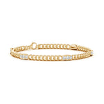 Crafted by Diwera Jewels, this refined bracelet features three brilliantly set diamonds spaced gracefully along a delicate chain, creating a timeless station design. Minimalist yet luxurious, each diamond adds a touch of sparkle that makes the bracelet perfect for stacking or wearing solo. Elegant, versatile, and effortlessly chic, this piece elevates any look with understated sophistication.
